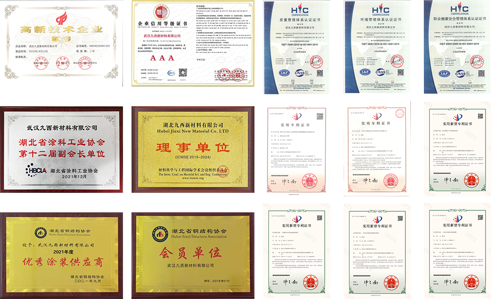 對(duì)于有著高技術(shù)門檻的工業(yè)板塊,九西打造的核心產(chǎn)品群只是業(yè)務(wù)通關(guān)的基礎(chǔ),要取得客戶信任,同樣離不開企業(yè)自身的各種資質(zhì)。頂著高新技術(shù)企業(yè)、ISO-9001的質(zhì)量管理體系認(rèn)證、ISO-4001的環(huán)境管理體系認(rèn)證、ISO-45001的職業(yè)健康安全管理體系認(rèn)證、多項(xiàng)發(fā)明專利及實(shí)用新型專利、3A信用企業(yè)、湖北省鋼構(gòu)協(xié)會(huì)優(yōu)秀涂料供應(yīng)商等光環(huán)的九西,已經(jīng)將目光鎖定在更具空間的高端市場(chǎng),為前沿客戶提供最完善的服務(wù)。